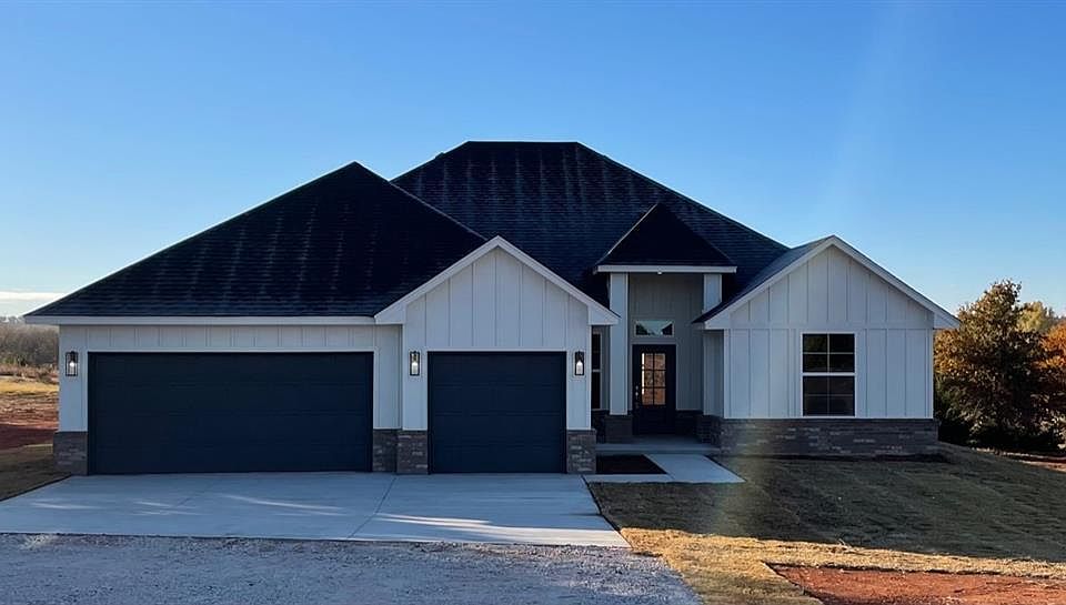 New Home Features: 3 Bed + Study + Game Room. 3 car with 2 lifts. Mud bench, post tension foundation, brick with board & batten siding on front, wood look tile flooring entry/liv/kit/din/halls, tiled showers and tub surrounds, tiled backsplash & undercab light in kit, farm sink, wood burning fireplace, covered back patio, all electric, well and septic. Annual dues are for road maintenance. Shop approved addition.