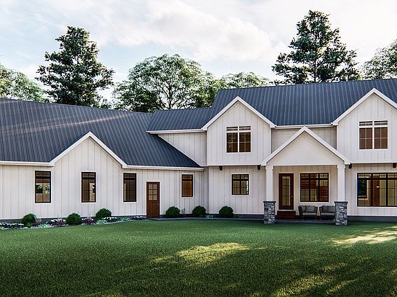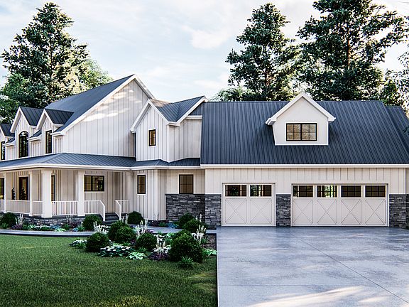 Choose from any of our featured home designs and we'll help you find a lot in your desired area to build your custom home. All of our homes can be completely customized including the exterior façade, adding basements, garages, outdoor living areas, etc. The price shown includes the cost to build the home and an allowance for site work, permits, utilities, school fees, etc. The lot price is not included as it is dependent upon location and size of the lot to be selected. Customize any of our featured home plans, select from another G.J. Gardner pre-designed plan, or create your own custom plan! Contact us today to learn more about building your new custom home.This 2-story, Modern Farmhouse plan is highlighted on the exterior by a wraparound porch, metal roof, and board and batten siding. Inside, immediate impressions are made by a cozy study with a fireplace adjacent to the entrance. The main floor also features a large great room and breakfast area that leads to an open kitchen. The kitchen, with expansive work island, lies beneath its own beamed ceiling and is open to the dining area.