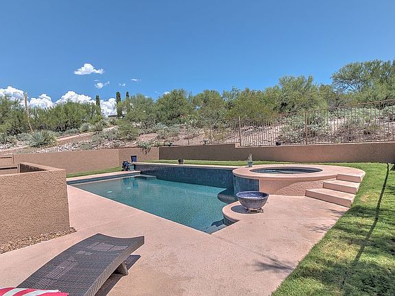 Exclusive Skyline Bel Air Estates split level home with master and guest quarters on separate wings, 1.6 acres make it a private and luscious retreat. Each of the 3 bedrooms + office/ bedroom off of garage have full bathrooms, stone floors, large entertaining backyard with sparkling salt water pool, beautiful elevated pool deck with spectacular Catalina and Finger views plus in-ground hot tub plus remodeled kitchen with stainless steel appliances, beautiful granite counters and lots of pantry space. Fenced yard with grass for play/dog area with mature trees. Two additional stone patios offer an entertainers dream with views for days of both mountains and city. Prime Foothills location, best schools in the city and best neighborhood amenities with stores, shops and restaurants all at Swan & Sunrise intersection! Wonderful Home.... whole house stereo for streaming music plus security system on all points of entry.
