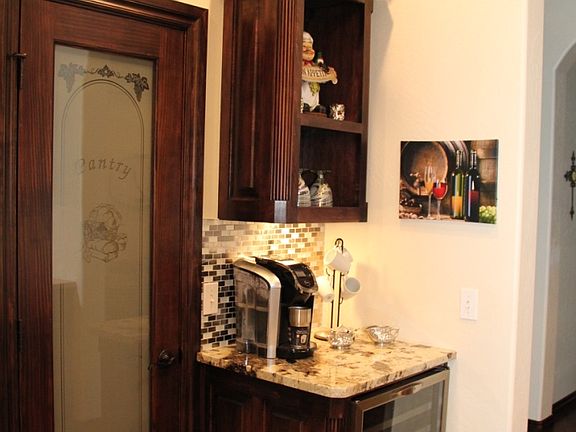 Built by designer/decorator and upgraded throughout with high-end appliances including full size double ovens, wine fridge, hardwood and stone floors, copper farm sink, custom fireplace surround, designer lighting, extended patio and much more. Contemporary style interior. Over $25,000 in upgrades. Must see to believe!