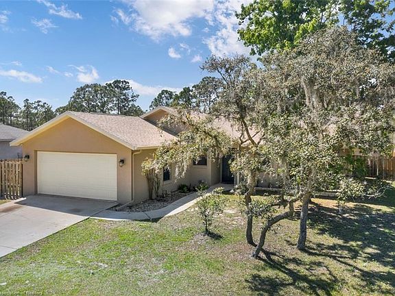 Come see this large but cozy home off the beaten path. This well laid out home features a split bedroom plan, solid surface counter tops, a nice size family room, a spacious galley kitchen with tons of storage and a pantry, tray ceilings, fresh new paint inside and out, porcelain tile in main living area and bathrooms, dual water wells, and ADT security system with remote access and monitor. The fourth bedroom is off of the large family room and can easily be used as an office or a huge playroom. Upgrades include remodeled bathrooms in 2017, new water heater in 2018, new roof in 2019, and new electrical panel in 2022. Very well maintained. Watch the sunset and enjoy Florida's nature in the peaceful and private backyard. It's much bigger than it looks in the pictures. This is the perfect family home with plenty of space for everyone. Come see for yourself!