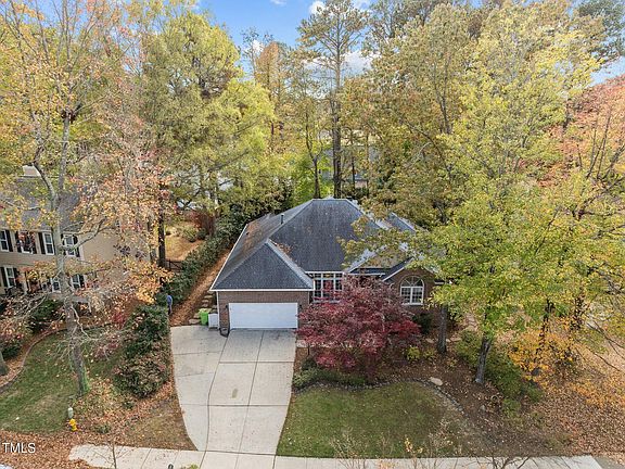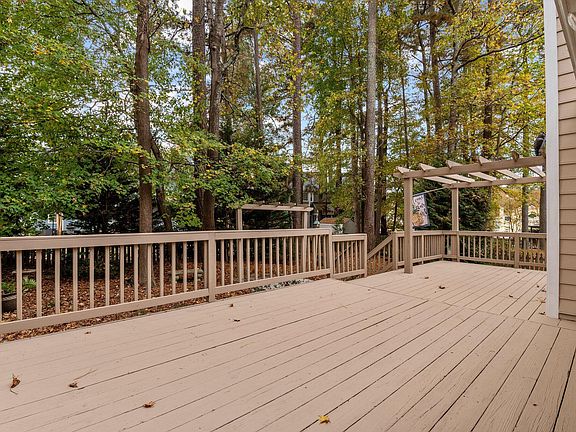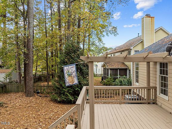 Back on the market due to no fault by the seller or property. One floor living in sought after Harrington Grove. This ranch floor plan offers 3 beds, 2.5 baths, new carpet, fresh paint, new water heater and tall ceilings throughout. The kitchen has granite countertops, open view of the living room with vaulted ceilings and plenty of counter space. The primary bedroom has a tray ceiling, luxurious walk in shower, walk in closet and water closet. The two guest rooms are on the other side of the home and the larger of the two has direct access to the back deck. The front of the home offers a formal dining room and study. This property has privacy trees in the fenced in back yard and an expansive deck. Excellent proximity to local schools, shopping grocery stores, 540 and is an easy drive to RTP. Membership to Harrington Grove Swim and Racquet Club available for an additional fee.
