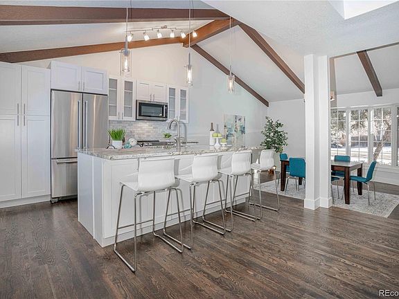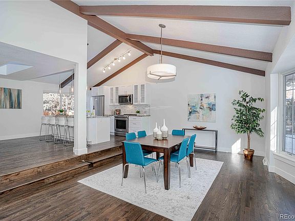 Welcome to this custom contemporary full rehab in A+ Sundance Hills neighborhood in Greenwood Village! Home sits on roomy lot just 1 block to neighborhood pool and tennis club in exclusive 300 custom home community. Home features open floor plan w/ vaulted front dining room, massive light & bright 2 story great room w/ wet bar, master suite with celebrity size walk-in closet & roomy master shower with rain head. New features include stunning kitchen w/ granite counter tops, custom cabinets w/ soft close drawers, stainless steel appliances incl wine and bev fridges, custom tile bathrooms, beautiful wood floors, solid core doors & new base/case, all new lighting, plumbing fixtures, furnace, new 55 gallon water heater & more! Above great room is a party deck w/ mountain views that just needs a railing system (previously had one, ask us how to incorporate). All this in a perfect location close to the Denver Tech Center, shopping and restaurants, light rail, Cherry Creek State Park and the highly-rated Cherry Creek School District! 6 month warranty on work related to remodel.