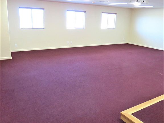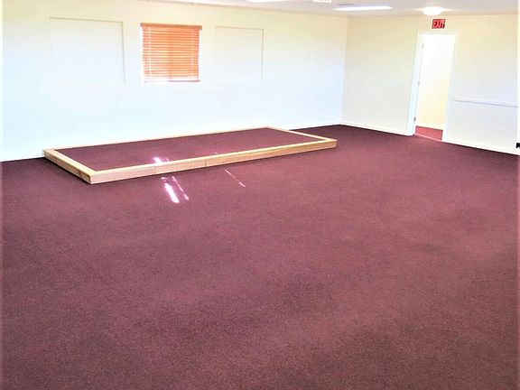 A truly unique property. Zoned residential, but was previously used as a church. Could easily be used as one again or use large main area as a living room and dining room. Has 2 bathrooms. One bathroom has a combo bath and shower. 1 bedroom does not have built in closet, but currently has a storage cabinet and room to put an armoire. Cute kitchen with gas cook top/oven. Large corner lot with huge yard and plenty of parking. 2 sides have existing block walls. Church had 30 parking spots on graveled west side of property. Come check out the possibilities.