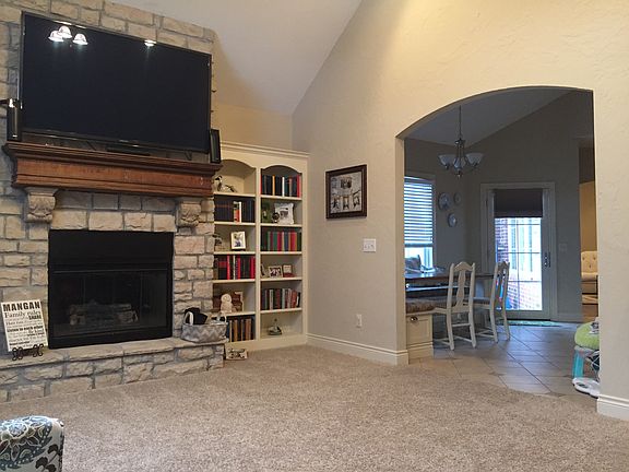What a wonderful home in Lake Ridge Estates by Springfield Lake! This floor plan is one level living with 2706 square feet featuring two comfortable living areas, a beautiful stone gas fireplace, a cozy built-in bench in the eat-in kitchen and also a formal dining room for larger gatherings. The kitchen is large and has a center prep island plus a 5 burner gas stove/oven. Plenty of storage with a separate pantry plus the butler's pantry. The master is split from the other 2 bedrooms who share the hall bath. The master suite is large with a vaulted ceiling, an exit door to the patio, a large master bath with jetted tub and glass shower plus a large closet. You can also enjoy having a home office or 4th bedroom with french doors. The backyard is nice and flat and has a great paver patio!