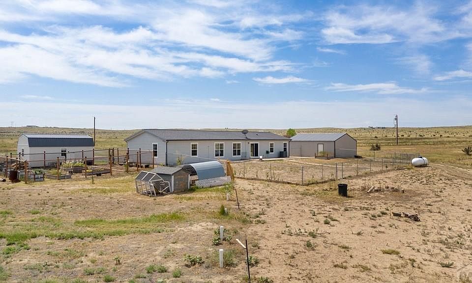Welcome to your dream ranch retreat with a NEW ROOF ! Nestled on an expansive 40-acre lot, and boasting mountain views, a detached 2-car garage, a hobby shed complete with electricity, a garden, a chicken coop & even an area carved out for a shooting range, this stunning 4-bedroom, 2-bathroom home offers a blend of modern amenities and rustic charm. The open layout is perfect for both relaxing and entertaining, providing a seamless flow from room to room. Step into the heart of the home, the living room, which flows into the updated kitchen, where culinary dreams come to life. Equipped with stainless steel appliances, soft-close cabinets, and luxurious granite countertops, this kitchen is both stylish and functional. Explore the main bedroom that is a true sanctuary, featuring a double vanity, a spacious garden tub, a free-standing shower & an impressive walk-in closet. It's a perfect retreat after a long day, offering all the comforts and space you need. Three additional bedrooms, a laundry room complete with a water softener, and a full bathroom complete this home. Outside, this property truly shines! The 24x30 detached garage provides ample space for vehicles & storage. Additionally, there's an oversized storage shed with electricity, perfect for hobbies or extra storage needs. For those with a green thumb, the fully fenced garden area is a delightful bonus. This home is a quick 15-20 minute drive to Fort Carson, making daily commutes an absolute breeze!