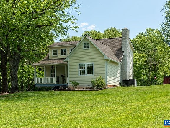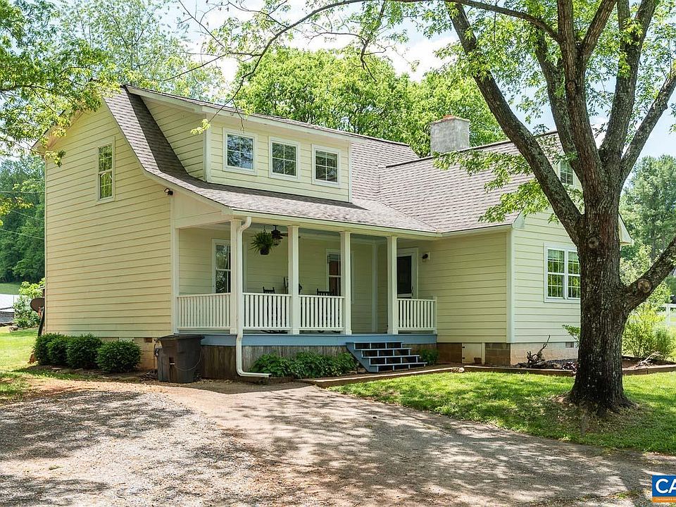 This charming farmhouse, just south of Barboursville & in Albemarle County marries the welcoming, cozy vibe of a simpler time with the benefits of extensive, thoughtful and modern renovations. Set well back from the road, enter the home from the rocking-chair front porch, with Blue Ridge views west. Main floor offers living, dining (with masonry fireplace), country kitchen (with a super retro sink and walk in pantry), a bedroom, full bath and home office/laundry/craft room. The second floor was added in 2009, featuring an owners suite with luxury bathroom and walk in closet, a guest bed/bath and a cute loft perfect for play or overflow (though the current owners use it for a child's bedroom). The structural and mechanical systems of the home were all replaced between 2009 and 2021, including roof ('09), HVAC (lower in '09 and upper in '17), siding ('09), drywall ('09), well pump and water line ('09), septic ('21) and much more. See MLS attachments for the full list of improvements. The detached 2 car garage has a world of potential for workspace/studio, the sweet , tiny red garden shed and play structure complete the picture. Very deep and wooded rear is your own private hiking sanctuary with pathways in place. Charming? Yes!