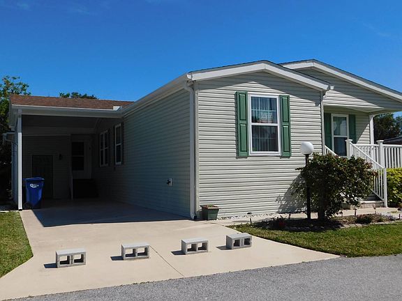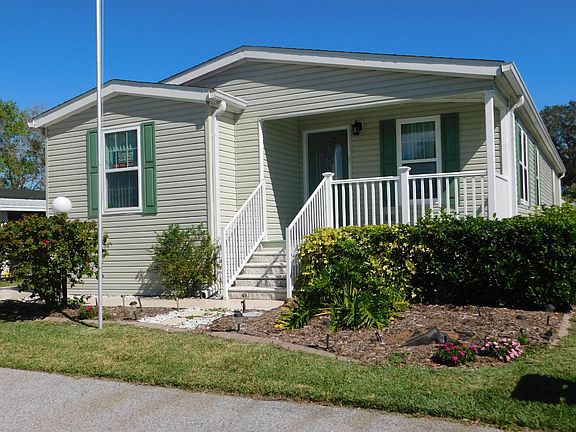 *****CALL FOR AN APPOINTMENT TODAY***** This is a gorgeous 3 bedroom 2 bath Palm Harbor Home. Palm Harbor is the leading manufacturer of homes for good reason. They are built to "Weather The Storm". Quality workmanship and built to last. Upgrades are normal here with crown molding, drywall, walk in closets and so much more. It has over 1400 sq ft not including the enclosed lanai. This partially furnished home is an open concept with split bedroom plan. You enter on a front deck perfect for sitting and having your coffee. It has a large living room and dining room with chandelier and a kitchen that is huge and a chefs dream. Lots of lots of cabinets. Side by side refrigerator, microwave, garbage disposal, dishwasher and electric stove with power element and warm and ready drawer. There is a large island, with four barstools and you can look right into the family room and enjoy your company while you are cooking. There is also a huge side bar that has lots of drawers, an extra store away shelf for serving food, wine glass holders, wine bottle storage and it is huge. This kitchen is open and white and clean and amazing. The family room is another place enjoy your company or just sit and relax and watch TV. Master Bedroom en suite-Accommodates a king size ensemble with room to spare. Has a large walk in closet with shelves, drawers and shoe holders. The bathroom is very large with a large high vanity with double sinks, 6 drawers and cabinets, a shower with glass doors and has carpet and tile flooring. 1st guest bedroom- carpet and has a walk in closet with shelves and an armoire for even more storage. 2nd guest bedroom-also carpet and ceiling fan and has double cabinets, small filing cabinet, end table and sleeper sofa. Walk in closet here too. 2nd bathroom- tub/shower combo, large vanity. There is an enclosed Lanai with a portable air conditioner that does the trick. It is furnished and has vinyl windows a screens. The perfect serene place to sit and eat, relax, play cards or just chat with friends. Laundry Room-just off the kitchen with washer and dryer. Lots of cabinets and cubbies. The furniture you see in this one stays. Nice long driveway and an area to sit as well with protection if it rains or is windy. The following improvements were done in 2017/2018. New outside insulation & vinyl insulation, new insulated windows, new outside aluminum frame around the bottom of the house, new 5" gutters and leaders, new garbage disposal, new carpet on steps by driveway and new Air Conditioner. An incredible home that is gorgeous and prices to sell so call today for an appointment. This is is a 55 + gated community with clubhouse, picnic area, billiards, game rm, craft rm, dog park, horseshoes, pool, shuffleboard and so much more. Activities galore. Close to shopping, a short drive to the beach and it is all about location so this is it. "All listing information is deemed reliable but not guaranteed and should be independently verified through personal inspection by appropriate professionals. Lighthouse Mobile Home LLC. cannot guarantee or warrant the accuracy of this information or condition of this property. The buyer assumes full responsibility for obtaining all current rates of lot rent, fees, and pass-on costs. Additionally, the buyer is responsible for obtaining all rules, regulations, pet policies, etc., associated with the community, park, or home from the community/park manager. Lighthouse Mobile Home LLC. is not responsible for quoting of said fees or policies."