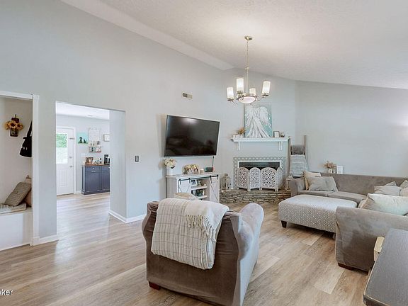 WOW! Dont miss this Move-in condition 3-bedroom, 2-bathroom ranch home, nestled in the heart of Jeffersontown. This 1,171 sq. ft. home combines classic charm with many updates, offering a warm and inviting atmosphere for its next owners. Step inside to discover a spacious living room featuring vaulted ceilings and a cozy fireplace, creating an ideal space for relaxation and gatherings. The large eat-in kitchen, adorned with ample windows, newer cabinets, granite countertops, and modern appliances, with access to the rear deck for entertaining. The master suite offers vaulted ceilings, an en-suite bathroom, and generous closet space, ensuring comfort and privacy. Two guest bedroom and full bath complete the inside. Outside, the expansive deck overlooks a fenced backyard, with a shed.