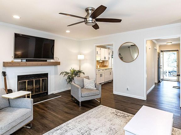 Great West Raleigh location with End Unit privacy and swimming pool views from the deck and flat backyard! This convenient home is just steps away from the neighborhood pool and minutes from restaurants, entertainment, and parks with walking and biking trails. Neutral colors inside and upgraded luxury vinyl plank flooring on the main level. Recent additions include custom floating shelves and fireplace mantel, 2023 water heater, and new exterior paint in 2024. All carpet is freshly cleaned and both bedrooms have en suite full baths. The Primary also has a pool view and walk-in closet. This popular neighborhood has dedicated parking spaces and abundant parking for guests, too. New roof in 2020 and exterior maintenance and landscaping covered by the HOA. Near major roadways with easy access to all points in the Triangle.