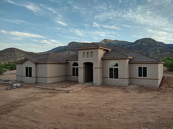Custom brand new home! 2 full acres close to town with a quiet country feel. Spacious interior living space of over 3100 sqft with vaulted ceilings (10-14ft) and over 4800 sq ft under roof, including a 3 car garage, a back porch, and an enclosed patio with panoramic views of the Huachuca Mountains, including Carr waterfall! Enjoy cooking in the large, gourmet kitchen featuring custom cabinetry, custom backsplash, granite counters, and double oven. In addition to 4 spacious bedrooms and 3 full bathrooms, this home has great living space with an office/craft room, a theater/living room, dining room, and a cavernous main room! Property is serviced by a shared private well and SSVEC electric service. Search no longer, you have arrived at your destination!