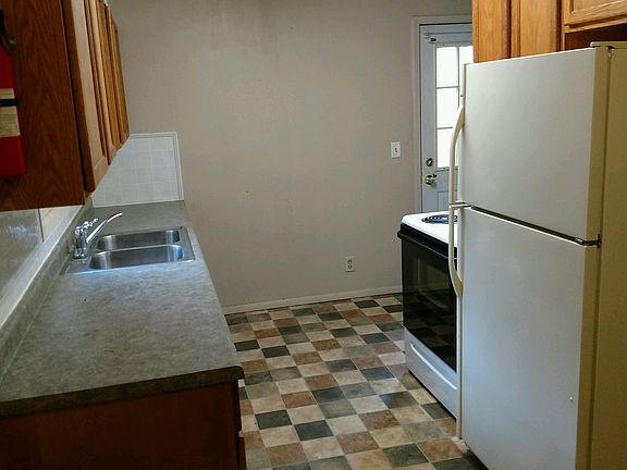 Bedrooms, bath, kitchen are on one level with laundry downstairs; new carpet in living room; large fenced backyard; one car garage with garage door opener Tenant responsible for utilities, trash service and mowing.