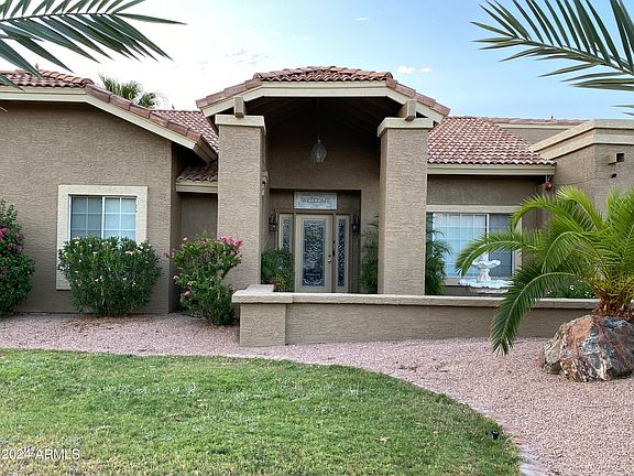 Beautiful home in highly desired, upscale area with no HOA where owners take pride in their homes and the neighborhood is pleasant and quiet. The inviting entrance opens to a large great room with vaulted ceilings, formal dining room and large kitchen. There are 3 are master bedrooms, 3 bedrooms have their own private 1/2 baths, and in total there are 9 bedrooms and 7 bathrooms. Home is totally re-painted inside and outside with light or neutral colors. Situated on a gorgeous large 1/3 acre lot that is private and has many possibilities. There is a built-in barbeque to enjoy, 2 extra storage sheds. The fenced pool is placed to the side so that a large grassy area remains open for recreation or could even fit a guest house. Very Nice Property !