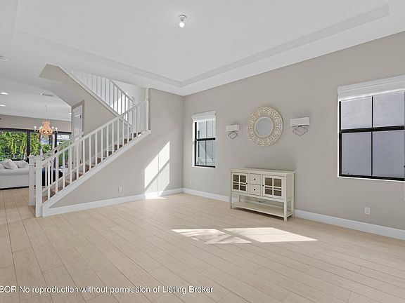 Gorgeous move-in ready home in the highly desirable neighborhood of Artistry, available for Immediate occupancy! This 4-bedroom + den, newly built home features an elegant open floor plan with plenty of space for everyday living and entertaining alike. Enjoy designer upgrades such as a stunning chef's kitchen with wood cabinets, luxury quartz countertops, high-end appliances, a gas range and a massive pantry. The backyard features a resort-style, saltwater swimming pool, a large covered patio & lush tropical landscaping. Upstairs you'll find an additional living room / loft, 3-bedrooms, 1 with a dedicated ensuite bathroom and a very spacious primary suite with dual walk-in closets & a 4-piece bathroom. Amazing opportunity to purchase in a new community in PBG at an attractive price point. Artistry is a new community located just minutes from Downtown Alton, the beach, I-95 and much much more. Community amenities include a manned guard gate, resort style pool, clubhouse, fitness center, walking trails and a basketball court.