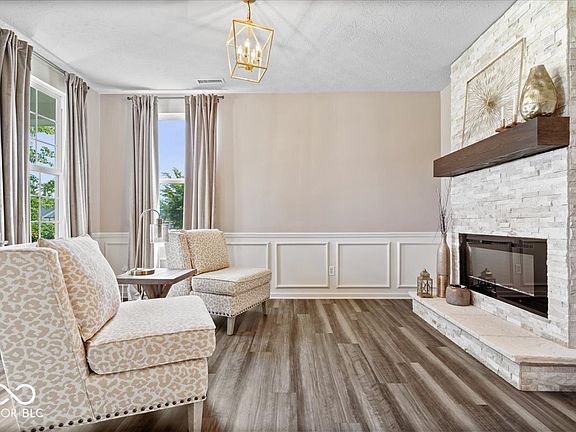Tucked at the start of a quiet cul-de-sac, this beautifully updated home offers privacy, space, & style in one of Noblesville's most convenient locations. A long driveway leads you to a spacious 3-car garage & a welcoming covered front porch- perfect for morning coffee or evening chats. Step inside to find thoughtful design throughout, beginning w a flex room that features a custom stone electric fireplace & elegant wainscoting, offering a cozy yet versatile space. Durable LVP flooring flows through the main lvl into the open-concept living rm, where a bump-out adds extra square footage & gives a more custom, airy feel. The wall of built-ins adds both character & functionality, while new light fixtures & motorized blinds elevate the ambiance throughout. The kitchen has been completely refreshed w new quartz countertops, an oversized island, & custom wet bar complete w a wine fridge - ideal for entertaining. From the main living area, you'll enjoy views of the tree-lined backyard, a private & peaceful retreat. Outside, the oversized patio & fire pit offer the perfect setting for gatherings or quiet evenings. The almost 1/2 acre lot is fully fenced, professionally landscaped w irrigation. Back inside, don't miss the oversized pantry, tucked-away desk space (ideal for work or homework), & the cleverly designed playroom under the stairs, to use for play or storage. Upstairs, the enormous loft w custom built-ins, provides space for a lg second living area or playroom. All 4 spacious bedrooms feature walk-in closets w wainscoting & trim detail. The primary suite offers double sinks, a separate tub and shower, & a generous walk-in closet. The secondary upstairs bathroom also features double sinks, making mornings much easier. Huge laundry upstairs to add to the convenience! Located near the Noblesville/Westfield boarder w quick access to schools, shops, & parks. This 5-yr-old home feels better than new - premium lot + $100k in custom updates + location = perfection