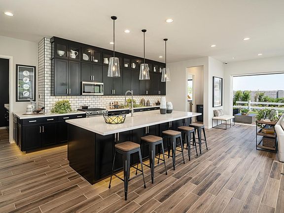 This award-winning model home features custom details throughout. Featuring a sun-soaked entry, this home design is bright and airy. Premium finishes in the kitchen include KitchenAid appliances, upgraded 42 upper cabinets with door hardware, beautiful tile backsplash, and a huge center island with a breakfast bar. The casual dining area is adjacent to the kitchen and provides a convenient and intimate setting. The great room is the perfect setting for relaxation with its open-concept floor plan and ample natural light. Sizable secondary bedrooms feature ample closet space, and a shared bathroom. The primary suite is in the back of the home for a more intimate, private setting. A luxurious primary bathroom boasts quartz countertops, dual sinks, a tiled walk-in shower, private water closet, linen storage, and large walk-in closet. The great room is perfect for bringing the outdoors, inside with the 12-foot multi-sliding pocket door that opens to an covered patio. The covered patio is ideal for outdoor entertaining. The backyard features a stunning swimming pool, outdoor kitchen, and dining area. The home is complete with designer curated finishes. A wide array of community amenities are located nearby. This home is a must see schedule a tour today! Disclaimer: Photos are images only and should not be relied upon to confirm applicable features.