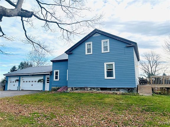 Welcome to this charming home, blending timeless character with modern updates. The main level boasts an inviting eat-in kitchen with newer stainless steel appliances, a breakfast bar, a cozy living area with a wood stove, a first-floor bedroom, a full bathroom, and a convenient laundry room. Step from the living room onto a newer deck, perfect for enjoying stunning views year-round. Off the kitchen, a smaller deck leads to the north side yard, offering additional outdoor space. Upstairs, you'll find beautifully refinished original pine floors and the spacious Primary bedroom, complete with an adjacent bath featuring a relaxing soaker tub and a separate sink area. Two additional bedrooms, including one currently used as an office, provide versatility and space for your needs. The home includes a 2.5-car attached garage and is situated on 1.38 acres of breathtaking landscape. You'll also appreciate the ample storage, proximity to state hunting land, and being just a 5-minute drive to DeRuyter Lake and nearby hiking trails. Don’t miss out on this unique home with so much to offer. Schedule your showing today!