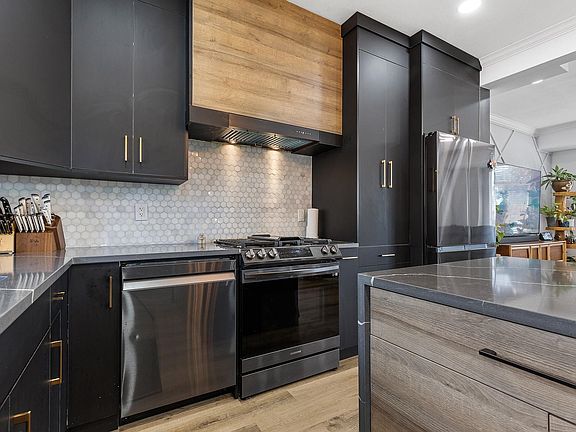 Spectacular modern fully renovated home with all the bells & whistles! Stunning kitchen w/black s/s appliances, custom breakfast bar, massive island w/waterfall quartz countertops, w/all new black s/s appliances, custom hood fan, coffee bar, tile backsplash, tons of storage & molding. Gorgeous added touches include millwork feature walls in every room, fresh paint, custom lighting, luxury vinyl flooring throughout, new closets, new furnace, hardware updated throughout, plus all bathrooms fully remodeled with designer tile feature walls. The backyard has a lovely kids' play center & no maintenance yard. Dual gas line added to the balcony for year round barbecues & firepit to enjoy with your family & friends. This is the townhome you have been waiting for!