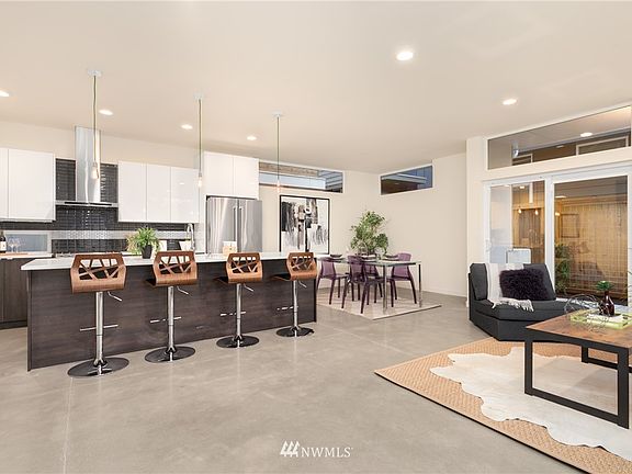 Refreshing, stylish, and Value have arrived in West Seattle. This move-in ready home boasts gorgeous concrete floors and designer finishes to complement the generous open floorplan. Island kitchen w/single surface quartz counters. Outdoor patio off dining area ideal for summers BBQs. High Ceilings throughout lower level. Relax on your private oversized terrace off master. Off street parking. Last available home in this boutique community. A fantastic offering, a wonderful location.
