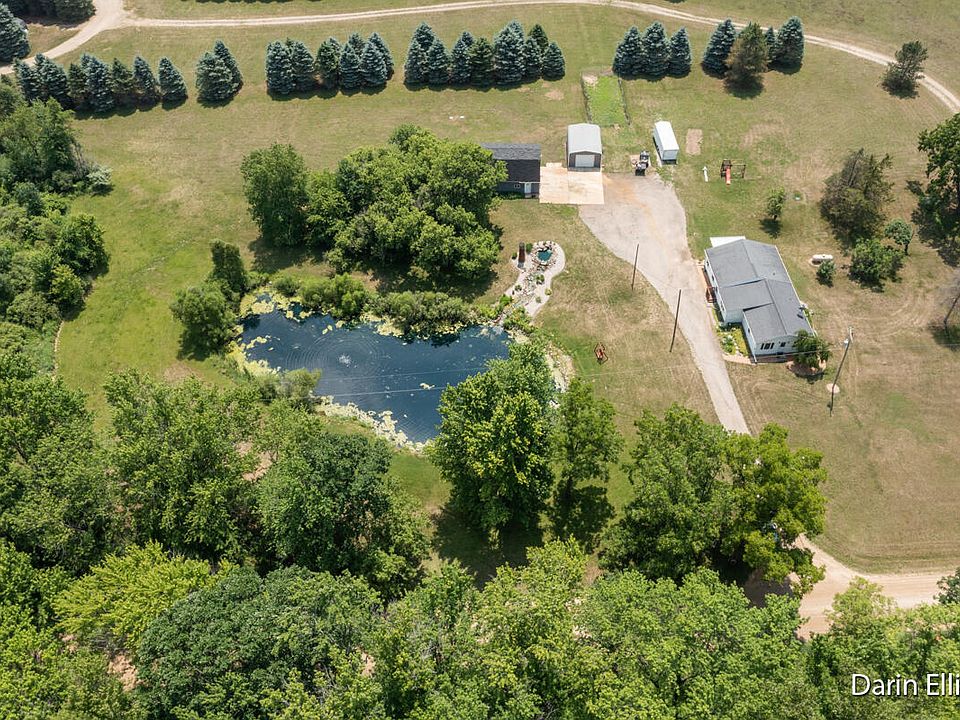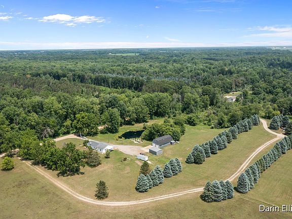 Absolutely amazing 5.5 Acre country setting with huge, stocked, aerated pond with gorgeous waterfall! Nearly 1800 sq ft ranch, 3 Bed, 2 full bath home has been extremely well cared for by the same owners for over 30 years. Kitchen has solid oak cabinets and all brand-new appliances, dining area overlooking the pond, 2 front beds, formal living room with brand new carpet, and full bath with main floor laundry. Kitchen/dining area also open up to 2012 addition that includes a great room/family room and access to Large Master Suite with private full bath and walk in closet. Hardwood floors, new fixtures, replacement windows and doors throughout. Sliders off family room with sunsetter awning for enjoying views. Home is mechanically sound with updated wiring, plumbing, and new tankless water heater. Full basement under the back half of the house could easily be finished into additional living space. There's a must see 24x48 pole barn that's insulated/heated, separate utilities, cold/hot water, bathroom, and upper-level loft with exterior entrance and tons of possibilities. An 18x26.5 metal garage with concrete and water completes the estate. Perfect property for that home business, hobby farm, etc. Don't miss the Honeywell whole house Generator. Carson City or Ionia Schools, You choose. Hurry to schedule your showing today!