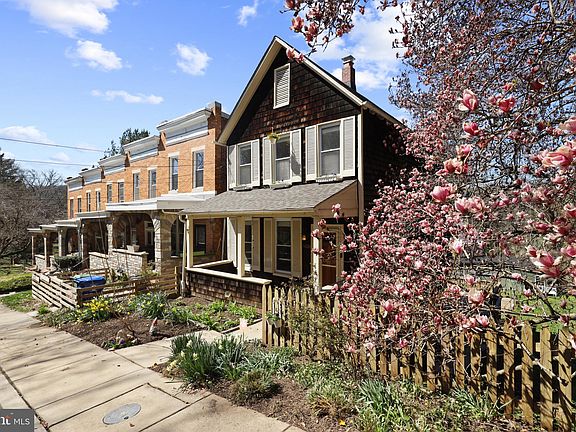 Instantly charming and rarely available single family home in Sabina Mattfeldt/Mt Washington with almost a third of an acre lot, a cozy front porch, and a rear deck for the sunsets over the Jones Falls. Custom kitchen remodel added two short years ago featuring center cut and honed white maple butcher block countertops. Shaker cabinets with soft close abound and are paired with stainless steel appliances featuring gas cooking, a breakfast bar and wide format ceramic flooring. The living room and separate dining room offer great light and feature planked hardwood flooring. As you ascend the stairs you will find three bedrooms and a large hallway bath. On the lower level, you will find a 4th bedroom, an office nook, and a full bathroom. A pellet stove adds cozy comfort in the winter months and efficient heating. Walk out the sliding glass doors to a large deck that overlooks the rear and side yard featuring a pergola, raised garden beds, and shade trees. A detached two garage is at the rear of the property and has access to Falls Road. Owners have not only done the kitchen remodel in 2021 but they also added a new dual zoned air conditioning unit (2018) and a new boiler for the heating in 2022. This home is perfectly located with easy access to the village of Mt Washington dining, shopping, and entertainment. Your new country house in the city awaits you here.