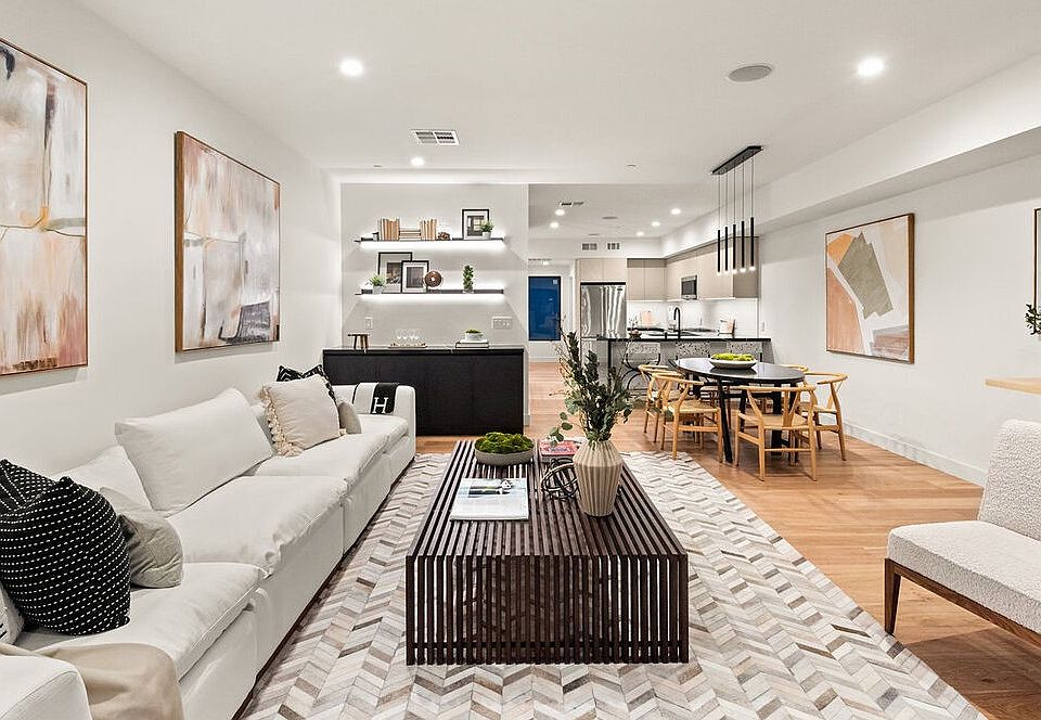 Experience elevated living in this ultra-modern, newly built single-family residence from 2022, nestled within the prestigious @Culver enclavean exclusive, gated community of just 12 homes located in the vibrant Mid-City/Culver City corridor. This stylish four-story retreat spans 2,608 sq ft, seamlessly blending refined craftsmanship with thoughtful design throughout. The home features three generous en-suite bedrooms plus a versatile loft space that can easily convert into a fourth bedroom, all accompanied by four full bathrooms and a convenient powder room. The sophisticated interiors showcase natural oak and tile flooring, exquisite imported lighting, marble accents, custom Italian millwork, built-ins, and a stylish dry bar. A chef's dream, the gourmet kitchen is equipped with high-end Viking appliances, including a gas cooktop, built-in oven and microwave, and dishwasher, along with a walk-in pantry. Enjoy sweeping city views from the private rooftop deck, in addition to a balcony and open patio, perfect for both relaxation and outdoor gatherings. The primary suite offers dual walk-in closets, a spa-like bathroom with double vanities, and its own private balcony. The home also includes central heating and cooling, a tankless water heater, and an attached two-car garage. Situated in a prime location, you are just minutes from premier dining, nightlife, and the shopping hub at Platform LA, and are surrounded by great schools like Marvin Elementary, Daniel Webster Middle, and Hamilton High.