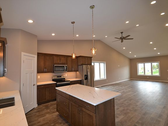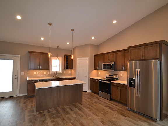 WELCOME TO CAREFREE 55+ COMMUNITY LIVING with NO STEPS to MAIN FLOOR! Huntington Homes is proud to offer this New Construction home ready for YOUR FINISHES. This HIGH QUALITY east-facing END UNIT ranch-style home boasts walkout basement, large vaulted ceiling over the entire kitchen, dining and living area and much more! You will love the large kitchen featuring beautiful counters and tile back-splash, stainless appliances, walk-in pantry, a center island that offers additional seating plus ample STORAGE throughout! And you will appreciate the convenient access to the deck just off the kitchen. The master suite has its own private bathroom with dual sink vanity, walk-in shower, and huge walk-in closet with built-ins. Plus the laundry is conveniently located on the main floor. (An additional laundry is possible in the basement.) The 2 stall garage is heated, has hot/cold water, a utility sink and floor drain. Other features include: 36-inch doorways for easy access, a full unfinished basement for storage and another laundry room. Basement can be custom finished to easily accommodate 2 more beds, a full bath and large family room. Buyer can ask seller for bid to finish basement to desired specs! The back yard includes a 10 x 12 patio with privacy fence along the back. No need to be bothered with lawn care or snow removal - the Association will take care of those details! This is a 4-unit/row-home. GREAT LOCATION - easy access to Highway 83, shopping, restaurants, banking, and more Agent/Owner