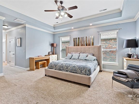 Custom home in popular gated community Shadow Valley. Grand entry with custom brick columns and high ceilings. Split floor plan with all rooms on one level. Perfect entertaining space with the game room and screened-in patio (w ceiling fan) off the kitchen. Enjoy relaxing around the fire-pit. Peaceful street located towards the back of the neighborhood. Tennis membership conveys. His/Hers walk-in master closets and separate vanities with jacuzzi tub and tiled shower. Epoxy floor in over-sized 2 car garage