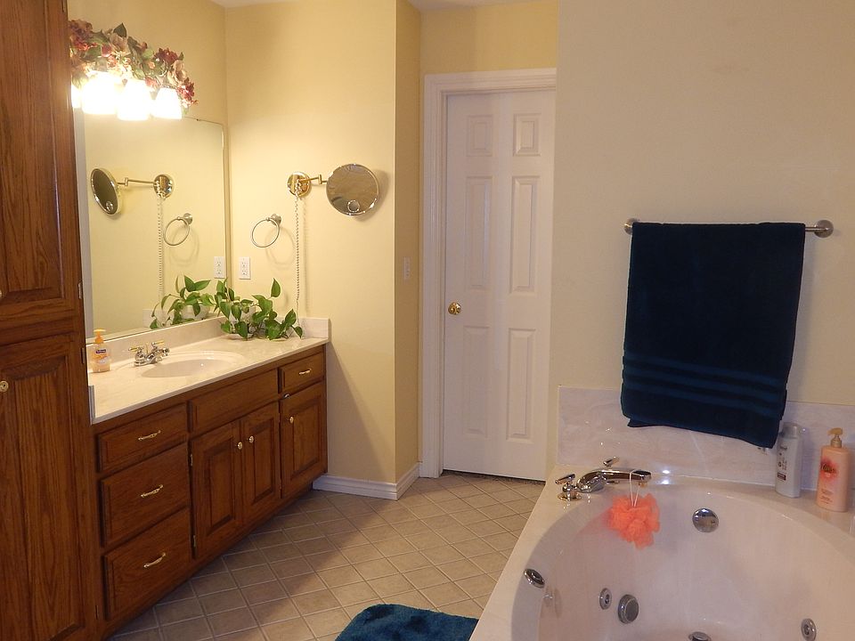 Beautiful and Spacious 4 BD, 2.5 BA, 3 CG home on quiet cul-de-sac in the lovely Park Hill Addition. Home features large open kitchen with formal living and dining areas. You will find plenty of natural lighting with the abundant windows as well as beautiful views of the outdoors. The large master has a Jacuzzi tub with a walk in closet. There are custom blinds throughout covering the double paned, energy efficient Alenco windows. The CH&A unit features a built in whole house humidifier. The garage has additional work space with built in shelving and 220 outlets for power equipment. Neutral colors and some fresh paint make this home move in ready! The backyard features a lovely patio with a lighted in ground pool and hot tub. There is also plenty of yard space for the family as well. A raised garden bed and separated fenced area is ideal for children's activities or pets. The privacy fence has three entry gates for easy access to the front and back of the property. The professional landscape and lighting add beautiful finishing touches to welcome you home. One year homeowner warranty provided by seller.