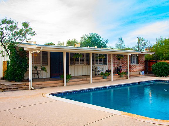 Built by mid-century modern Tucson building legend Tom Gist who had a unique design aesthetic with a problem-solving approach to custom home design and superb building skills. This burnt adobe ranch home features many original design elements and finishing touches that embodied Gist's concept of ''gracious natural living at its best''. The North/South orientation takes advantage of natural light and increased energy efficiency. Enjoy the best of Tucson outdoor living. The back yard features expansive covered patios, two large yards, sparkling pool and mature landscaping. The oversized corner lots adjacent to alley for additional privacy a semi-rural feeling. Additional features: Fireplace, plantation shutters, skylights, artistic wrought iron doors, 2 car garage, large laundry room.