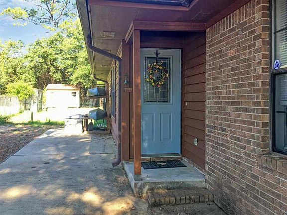 Split floor plan wih a master suite in the rear, and guest suite in the front. Beautiful tile floors througthout the main living area. The kitchen and bathrooms are gorgeous for this price range of home. Enter the open living area with cathedral ceilings, ceiling fans throughout, alarm system, over to the kitchen with so many cabinets and pantries, you will have to go shopping to fill them up. All ceramic tile, beautiful custom cabinetry, tile countertops, drop-in Ceran top double oven, high end faucets, deep double porcelain sink. Double ovens. Microwave shelf. Large side by side refrigerator. Sky blue guest bedroom has private door to full bath, also bath to hall. Master bedroom on the rear has extended open sitting/study area overlooking pool with vinyl flooring added to living area by enlosing an existing sun room. Walk in closet. Windows overlook Florida room with air conditioner, vinyl flooring, bank of windows. Drop dead master bath with low flush commode, double sliding glass closet. Two wall light sconces. The vinyl floored Florida room has a bank of windows with solid french doors opening to living area, door to sitting area in master bedroom, rear door to wrap around decking. Gazebo, inground pool, and wrap around decking enhance the rear yard. Covered outdoor kitchen/smoker, for outdoor entertaining in between the two out buildings. drive on each side of the brick and cedar sided residence, with a one car garage housing hurricane devices,