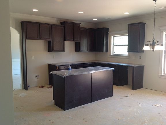 The Kaylee – this home will sit on cul de sac lot and will have easy access to our amenities. Full front porch with metal roof opens onto two story foyer, formal living room, huge formal dining room and beautifully appointed kitchen that overlooks breakfast and family room. Kitchen comes complete with stained cabinetry, granite counter, travertine backsplash and double oven stainless steel appliance package including refrigerator. Upstairs, features large master and four secondary bedrooms, one with private bath. Covered porch overlooking backyard. This home will be ready for summer of 2015.