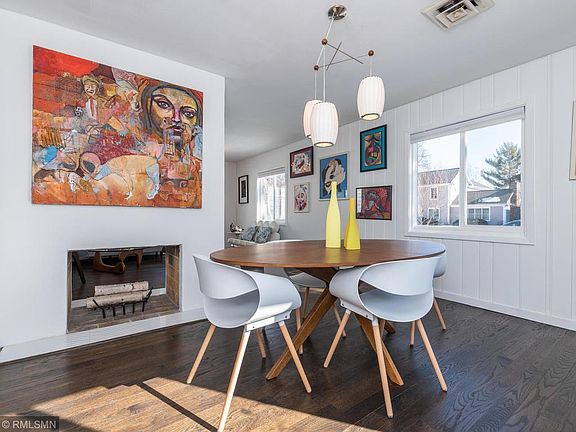 True Mid-Century modern. Great location in East Edina. No changes needed, move right in! New custom wide solid wood flooring throughout the main level. Amazing two-sided fireplace!