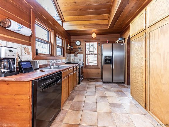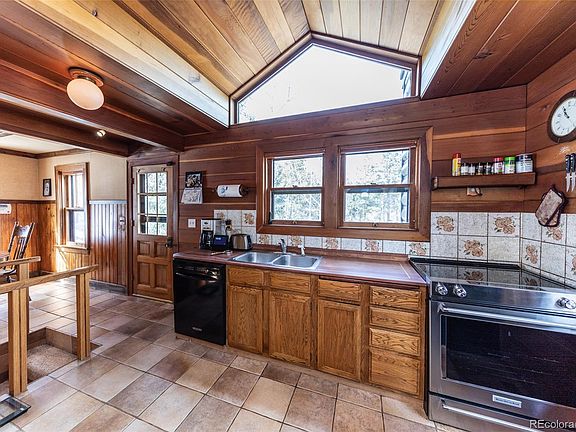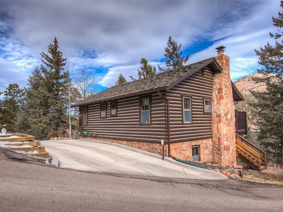 Cozy & updated log sided walkout rancher on .66 acre forest private lot with mountain & rock formation views-Full of rustic charm & character-3 car detached garage w/woodburning stove for heat, shelving and storage-New cement driveway large enough for an RV or multiple cars. Newer PVC piping -newer electrical box, hot water heater (2016), newer upgraded carpet-Fresh exterior paint-Redone 950 sq. ft. of redwood decking-Eco-shake roof w/50 year warranty, class A fire resistant & class 4 impact resistant. 2 dog runs-Garden area in ravine-15 minutes west of Colorado Springs.