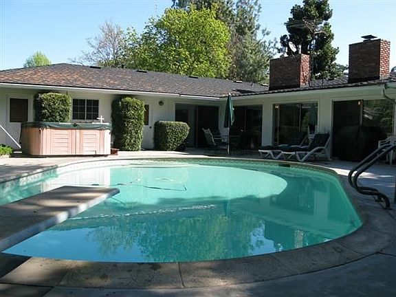 This beautiful home is located in the Bullard High area, near North Palm Avenue & near the Fig Garden Village Shopping. It has been tastefully renovated both inside & out. Crown molding, baseboards, new interior doors, French doors and recessed lighting have been added. In the kitchen, the cabinetry has been refinished,new tile floor & counters, plumbing & lighting fixtures, appliances, & eating counter between the kitchen & family room have been added. The baths have new cabinetry,tile floors & counters, plumbing & lighting fixtures. There is a separate bedroom/bath for mother-in-law, teenager or office. A new heating & air conditioning unit & a 50 yr composition shingle roof, & were also added in 2006 & 2007. The rear has a swimming pool & above ground spa. In addition, there is a separate private landscaped & fenced yard ideal for children. The covered patio was enclosed & has beautiful tile flooring & a pellet stove. This home has been well cared for & maintained.