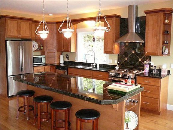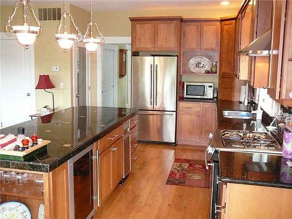 CK CUSTOM HM ON 2.5 AC $380,000 Very private setting with this Central Kitsap custom built home on 2.5 acres. Partial Oly Mt views. Just min. from Silverdale/Bremerton. Very impressive ammenities throughout. Covered entry, beautiful hardwoods on main floor. Great room concept with gourmet kitchen. Slab granite coutertops, stainless appliances, island with breakfast bar, walkin pantry, wine frig & large dining area. Gas fireplace in living room. 9' ceilings. Spacious laundry rm on main floor. Covered deck plumbed for gas bbq.