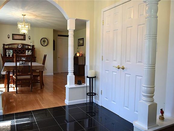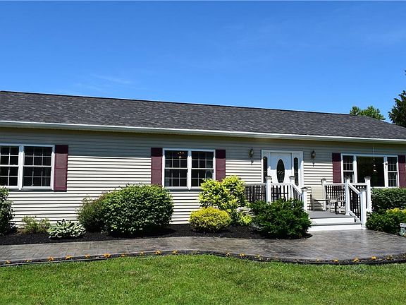 Masterfully designed ranch home welcomes you with a gleaming marble entry way surrounded by heated hardwood floors. The country kitchen has custom maple cabinets and porcelain flooring. Cozy up in the living room next to the marble propane fireplace. Master bedroom has its own composite deck overlooking the back yard & stocked pond. Full walkout basement is partially finished with rooms for added space. Lots of possibilities for additional bedrooms throughout. 1600 sq ft garage boasts 13 foot ceilings with water, electric, heat, central AC and a 5 ton lift. 16x20 front building was an office that has electricity and heat.