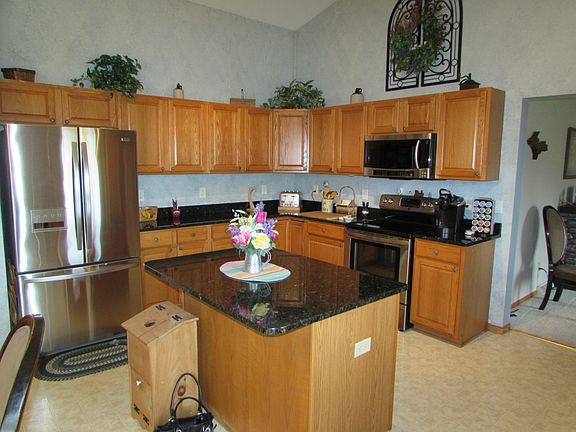 Popular Eagle Point Subdivision adjacent to H.F. Johnson Park. Mins to I-94 for commute to Milwaukee/Chicago. Nice curb appeal with this inviting open-concept ranch on a beautifully landscaped lot. Spacious kitchen w/ abundant cabinets, island, new granite counters & stainless steel appliances. First floor laundry and den adjacent to kitchen. Patio doors to awesome patio for BBQ's. Master suite w/ french doors and full bath w/ whirlpool tub & shower. Cathedral ceilings provide open airy ambiance. 3 car garage for toys/lawn supplies. Furnace equipped w/ air cleaner.