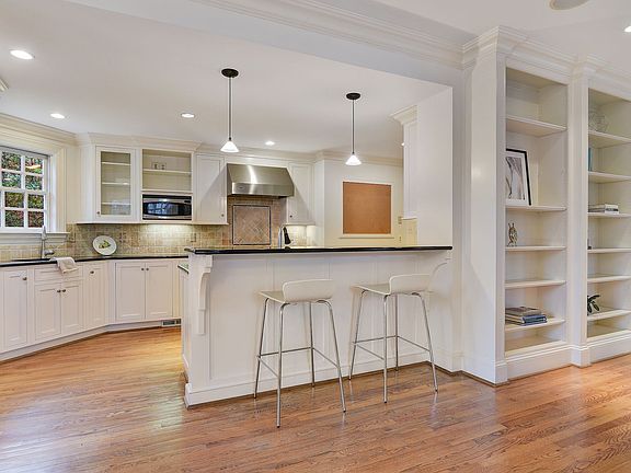 - Recessed Lighting, Walk-In Closet(s), Built-Ins, Dining Area, Crown Molding, Wood Floors, Wainscotting, Breakfast Area, Kitchen - Gourmet, Family Room Off Kitchen, Chair Railings