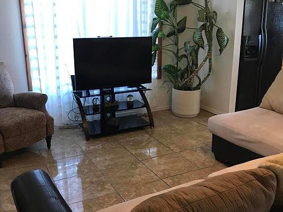 Excellent house with 3 bedrooms and 2 bathrooms. Living room, dining room and a beautiful pool to have fun with your family. It also has ceramic tile throughout the home, 2 car garage with cabinets. Slump block construction, No HOA and a big lot.It's located in a quiet neighborhood and is closeto Freeway and shopping center and dining.