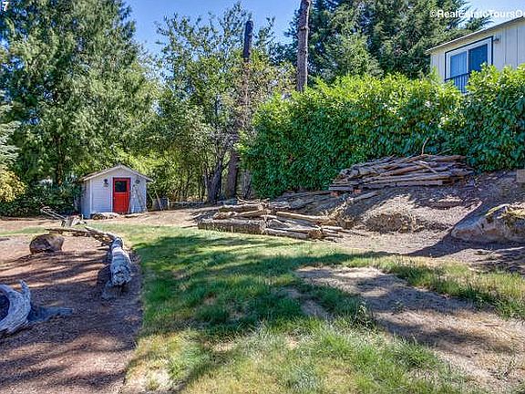 Private, quiet property w/deep set back from street. Expansive grounds and daylight studio. Skylights, galley kitchen, disposal, gas plumbed. Gas space heaters. Bathroom w/shower. Covered patio and storage. 2014 Roof. Outbuildings include bunk house and shed at far corner of property. Build options, upside investment potential. Home business opportunity. Adjacent lot RMLS #17457604 also for sale by same owner. Tour by appointment only.