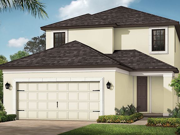 The spacious Anastasia floor plan offers a unique layout that's ideal for Florida living. The foyer angles off the front porch, with access to the laundry room and a half bathroom on the right. Straight ahead, the designer kitchen with offers pantry and counter space with the sink square to the open dining room and gathering room area. The main level also includes a study with French doors. Step outside to the lanai, accessible from the gathering room. Add the optional outdoor kitchen to the lanai and create an outdoor living oasis of your own.The owner's retreat is tucked away off the gathering room. A walk-in closet provides plenty of wardrobe space. The owner's bath features a water closet for privacy and two sink vanities separated by an elegant over-sized shower. Upstairs you'll find a loft with an open view down into the gathering room. Three additional bedrooms are on this level, one with a private full bath and the remaining two conveniently located near another full bath. You have several layout options on the second floor, including the option to enlarge one of the bedrooms into a second suite, which includes a walk-in closet and a two-sink full bath. Another popular option is the addition of an upstairs game room.