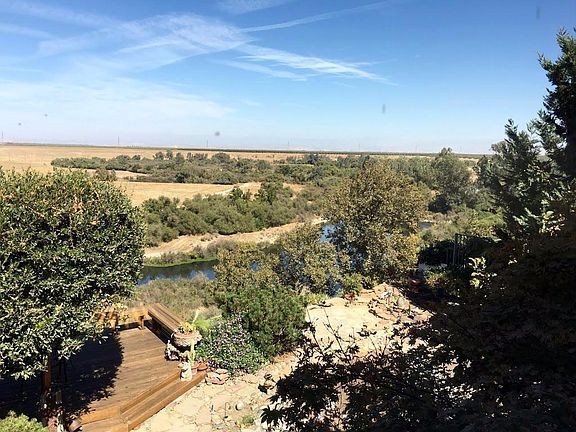 Bluff and river view home values are higher than a home with no view. Listen to the San Joaquin River running at the bluff edge of this Leo Wilson home. Only a handful of homes in Fresno County are so close you can hear the river! It is a bird watcher's paradise. The gourmet kitchen has granite counters, Italian tile backsplash, a Shaws farmhouse apron front sink, gas cooktop and hardwood floors. Cabinetry has soft close drawers, an appliance garage, pull-out trash cabinet, lazy Suzan and other organizing features. Under counter lighting enhances the gorgeous granite counters and additional ceiling lights dim for setting just the right mood. The home has many great features including a slate wall fireplace, enhanced larger windows, stunning entry chandelier, floor-to-ceiling built-in bookcase and cabinets in family room and plantation shutters in many rooms. The 4 bedrooms are all upstairs but there is a full bath downstairs. Whole house fan & solar for energy efficiency.
