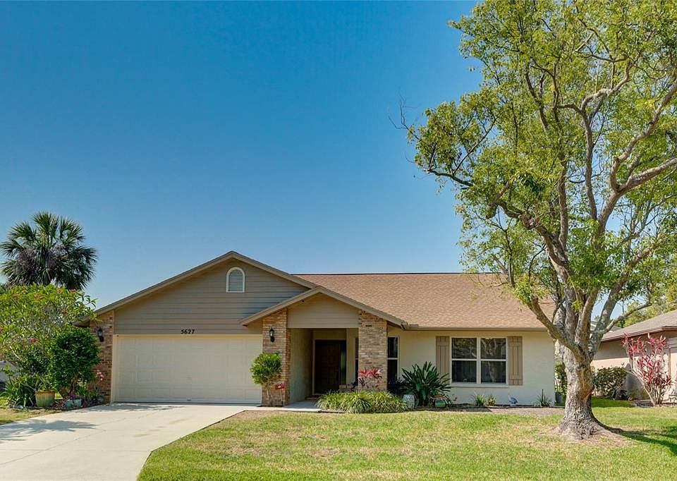 Beautifully Renovated, 2 Bedroom PLUS OFFICE that can EASILY BE CONVERTED INTO 3RD BEDROOM. in the Briarwood Community with VERY LOW HOA and NO CDD! When you pull up to this property notice the curb appeal with mature trees and newly painted exterior. As you enter the property feel the peacefulness of the light and bright open floor plan with skylights and stunning views of the lake in the backyard. This modern farmhouse is completely updated with luxury vinyl throughout and new interior paint. Head to the brand new kitchen, a chef's delight with plenty of storage and counter space, new cabinets, new granite counters, tile backsplash and newer stainless steel appliances. The island opens to the breakfast nook making entertaining a breeze. This split floor plan has a large master bedroom with large his and her closets and a completely renovated bathroom with dual sinks and a gorgeous walk in shower. Even the small things where thought of in this renovation, like the electrical plug behind the vanity, allowing you to have hair styling tools or chargers plugged in without ever leaving the inside of the drawer. On the other side of the home, is the office, second bedroom and bathroom. Just outside the office is a full size closet that can easily be converted and opened into the office for a potential third bedroom. The second bathroom is also completely renovated with wall to wall modern tile and glass backsplashes. The newly renovated interior laundry room has plenty of cabinet space and a customized countertop. Head outside into the extra large, enclosed screen covered porch with new brick pavers where you can spend your mornings drinking coffee or entertaining guests in the evening, while enjoying the serene lake views and Florida sunsets. The Briarwood community offers two community pools, tennis courts and shuffle board. This property is centrally located near world-class shopping, plenty of great dining options, near medical facilities, the airport and just minutes to the pristine gulf coast beaches.