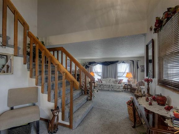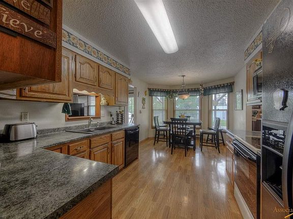 One-of-a-kind Rapid Valley home on nearly an acre with large shop and bus service to Douglas schools from your front door! This well-maintained property, originally built as the builder's personal home, has newer roof and siding on the home and tons of outdoor gathering space. Two main floor fireplaces, one ducted to provide additional low-cost heat to the upper level bedrooms. Formal dining room, office, heated sun room leading to a sprawling patio, mud room from attached garage and a large master suite is one of 4 bedrooms on one level. The perfect fit for a family of any size with elbow room to spare!