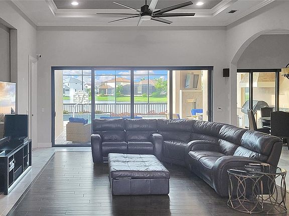 John Cannon custom build situated on one of the most beautiful premium homesites in sought after Legends Bay. The custom floor plan represents an exciting transitional mixture of coastal and modern architecture. Each of the main rooms provide an unobstructed view of the home's pool and outdoor living areas with expansive views of the lake. Stunning finishes under 12' high ceilings provide a 'wow factor' for all who enter this less than 6-year-old home. The master bedroom looks out over the spacious lanai pool and lake, while the master bath is home to an oversized soaking tub and a large walk-in shower with large glass panels. The large gourmet kitchen features Wolf and Subzero appliances including a warming drawer and steam oven to bring out the chef in you. There is even a butler pantry with coffee bar area and Subzero beverage refrigerator. Soundproof insulation in both the media room (with closet/could be 4th bedroom) and study to provide sound reduction when needed. Whole house water filtration, water softener, and even reverse osmosis has been added for the cleanest drinking water possible. Security System with four cameras and a tablet for viewing. Expanded lanai and pool area to include an outdoor kitchen, spa, and a fireplace. With 3 bedrooms, 3 baths, media room, study, bonus room, and a great room that opens to the dining room and kitchen make this home perfect for entertaining. This "better-than-new" custom John Cannon residence is a dream come true to start living the life you deserve!