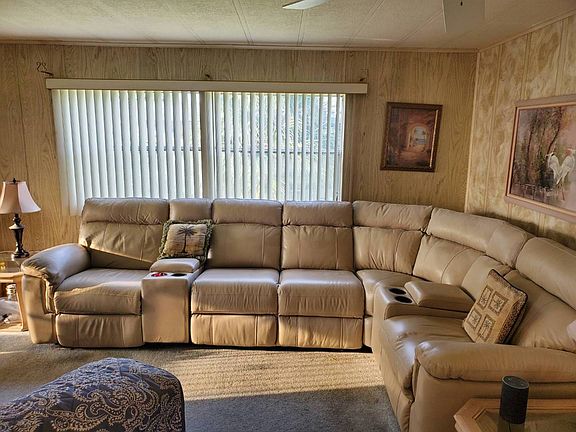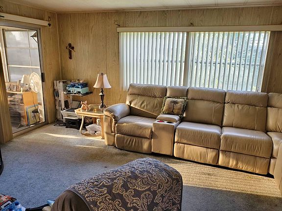 Nestled on a quiet street, you will find this attractive 2 bedroom/ 2 bath home home gracing our Florida sky. It offers a refrigerator, stove, microwave, dishwasher, washer and dryer. It has a lovely sunroom that is enclosed together with a carport and an attached storage shed and lanai. This home has a wonderful floor plan with lots of storage space. The floors are some carpet and tile. The ceilings are paneled and the walls are wood paneled. The roof is a roof over and only three years old. It has a large 2018 air conditioner that works well. The water heater was redone in 2017 and there is new piping under the whole house. This beautiful home comes furnished and is turnkey. The lot rent is $862.49 and includes water, sewer, trash, lawn care and cable. Located in the lovely 55+ park, Windmill Manor. This community offers a clubhouse, pool, game room, library, shuffleboard and a billiard room. It is a short distance from our restaurants and Florida beaches. The person that finds this home gets a great buy, so do not delay in calling me to view this home. You will be happy you did! All listing information is deemed reliable but not guaranteed and should be independently verified through personal inspection by appropriate professionals. Integrity Mobile Home Sales cannot guarantee or warrant the accuracy of this information, measurements or condition of any property. Measurements are approximate. Lot rent subject to change.