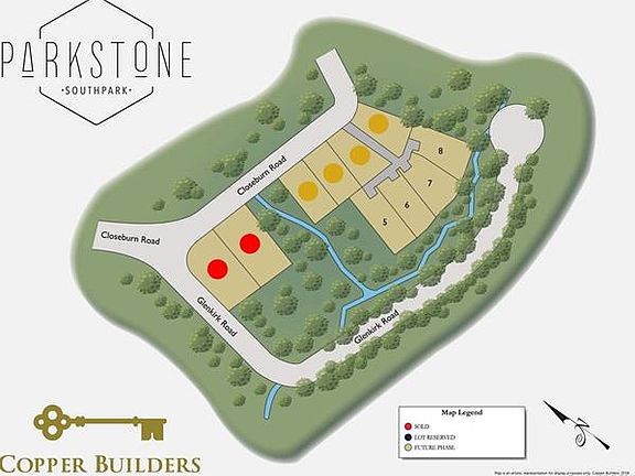 Introducing PARKSTONE PLACE in the heart of SouthPark! 8 Custom homes by Copper Builders tucked away in a wooded enclave while in the middle of everything SouthPark has to offer. Both basement and crawl space homesites are available. Master Up and Master Down Plans available. This listing is for the Clovelly Plan which at list price includes a 1412 Sq. Ft. unfinished basement. The Clovelly offers a bright open first floor plan with private wooded views out of the living room doors. Quartz tops throughout, Custom cabinetry in kitchen, 36" commercial range and 36" built-in refrigerator/freezer, site finished wood floors, oversized garage, mud room with built-ins, first floor office, and expansive master suite with oversized walk-in shower are just a few of the offerings to look forward to! The remaining 3 lots will be available for sale in Spring 2020