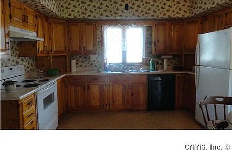 This home has a large eat-in kitchen with handcrafted pine cupboards, laundry area. Formal dining room and cozy living room. Nice sized 1st floor bedroom and a handy 1st floor bath with tubwall. Second story houses 1 bedroom and a very large walk-in attic that could easily be converted to a bath and 2nd bedroom. There is a 2 stall detached garage with workspace. Large village lot on quiet neighborhood street.