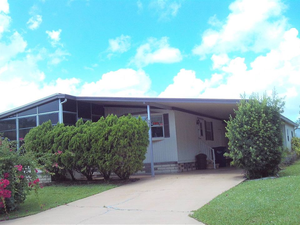 VERY NICE 2-BEDROOM, 2-BATH 1981 SCHULT DOUBLE-WIDE MOBILE HOME. KITCHEN HAS A BREAKFAST BAR, PANTRY, LOTS OF CABINETS AND A BAY WINDOW. THE DINING ROOM HAS A BUILT IN CHINA TO DISPLAY THOSE SPECIAL ITEMS. YOUR LARGE LIVING ROOM PROVIDES YOU WITH PLENTY OF SPACE TO LOUNGE AND RELAX WITH YOUR FAMILY AND/OR FRIENDS. OFF THE LIVING ROOM ARE SLIDERS THAT LEAD TO YOUR 12 X 14 VINYL ENCLOSED FLORIDA ROOM WHICH PROVIDES YOU WITH YET ANOTHER AREA TO ENTERTAIN OR REST AND RELAX. TILE AND WOOD LAMINATE FLOORING FLOW THROUGHOUT THE HOME EXCEPT FOR THE BEDROOMS WHICH ARE CARPETED. YOUR MASTER BEDROOM HAS A SPACIOUS WALK IN CLOSET. MASTER BATHROOM HAS A SHOWER AND A DRESSING AREA COMPLETE WITH LIGHTED MAKE UP VANITY. THE GUEST BATH INCLUDES A TUB/SHOWER COMBO. OFF YOUR CARPORT IS A LARGE SHED WITH UTILITY SINK AND HOOKUPS FOR YOUR WASHER AND DRYER. THE MATURE LANDSCAPING IS VERY PLEASING WITH THE ADDED SHADE IT PROVIDES. WINDMILL MANOR IS A VERY ACTIVE BUT QUIET 55+ GATED COMMUNITY. YOUR MONTHLY LOT FEE OF $840 COVERS WATER, SEWER, GARBAGE, CABLE AND LAWN CARE. EVERYTHING EXCEPT ELECTRIC! WINDMILL MANOR HAS A HEATED POOL W/SPA, SHUFFLEBOARD, BILLIARDS AND CLUBHOUSE. LOCATION IS A PLUS WITH BEING MINUTES AWAY FROM I-75, RESTAURANTS, SHOPPING, PUBLIC LIBRARY AND MEDICAL FACILITIES. THIS HOME IS PERFECT FOR YEAR-ROUND OR SEASONAL LIVING.